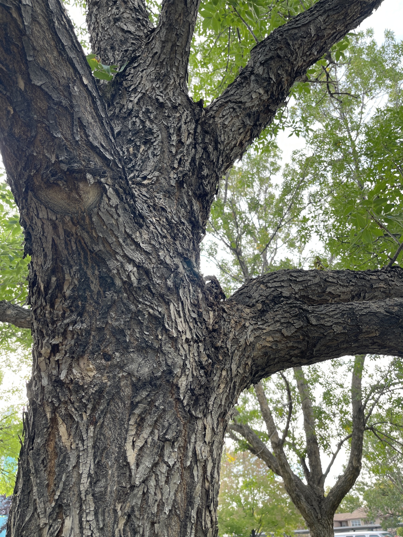 Mature Siberian elm bark looks progressively more ragged, but always has characteristic network of broad interlaced ridges