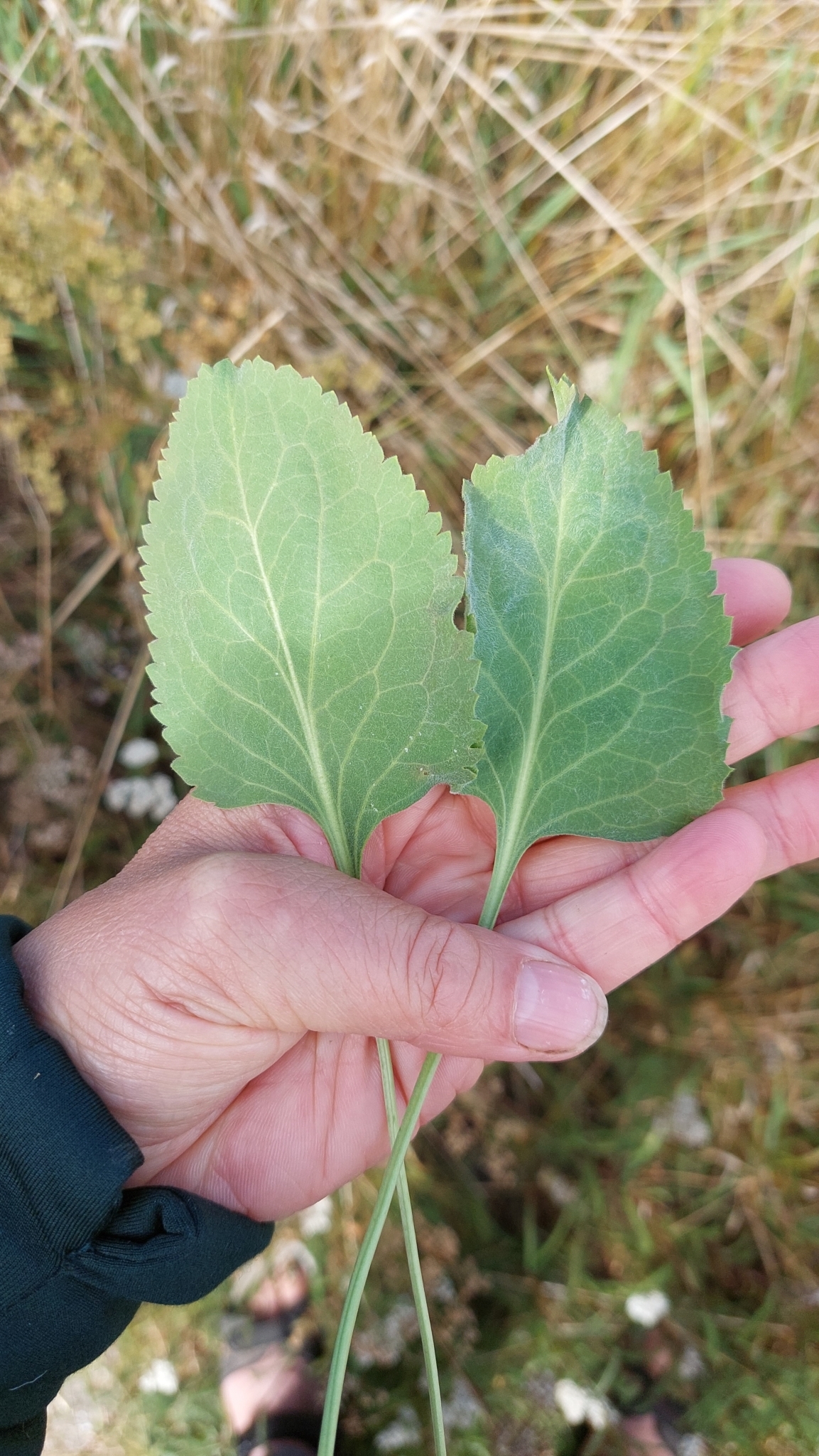 Basal leaves are entire with toothed margins, and can be ovate to oblong.